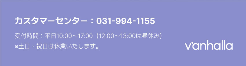 | カスタマーセンター | 82-31-994-1155 / www.vanhalla.co.kr |